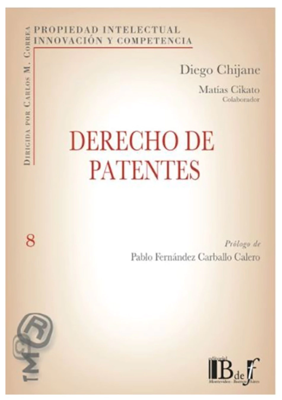 Con la colaboración de Matías Cikato. Naturaleza jurídica del Derecho patrimonial de patente. Concepto y requisitos de las invenciones patentables. Creaciones que no son invenciones e invenciones no patentables. Derecho a la patente y designación del inventor; empleados inventores, entidades universitarias, cotitularidad. Objeto y contenido del Derecho de patente. Límites del Derecho de patente. La infracción de patente. Protección civil de la patente: cese de uso; remoción; destrucción; difusión; atribución en propiedad; daños y perjuicios; enriquecimiento sin causa; legitimación de las acciones de infracción. Protección penal de la patente. Diligencias preliminares, prueba anticipada y medidas cautelares. Medidas de frontera en el acuerdo ADPIC y en el sistema nacional. Conflictos internacionales, jurisdicción y ley aplicable. Conductas defensivas del presunto infractor. Prescripción de las acciones civiles y penales. Transferencia de la patente. La licencia de patente. Normativa antitrust y licencia de patente. Diseños industriales. Modelos de utilidad. Procedimientos. Prólogo de Pablo Fernández Carballo Calero.