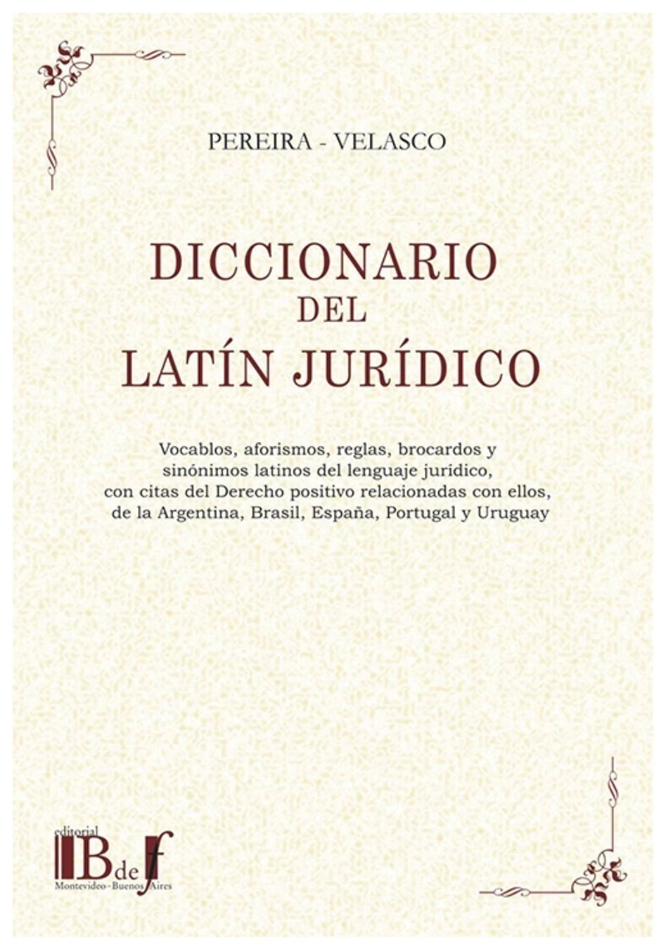 Vocablos, aforismos, reglas, brocardos y sino´nimos latinos del lenguaje juri´dico, con citas del Derecho positivo relacionadas con ellos, de la Argentina, Brasil, Espan~a, Portugal y Uruguay,