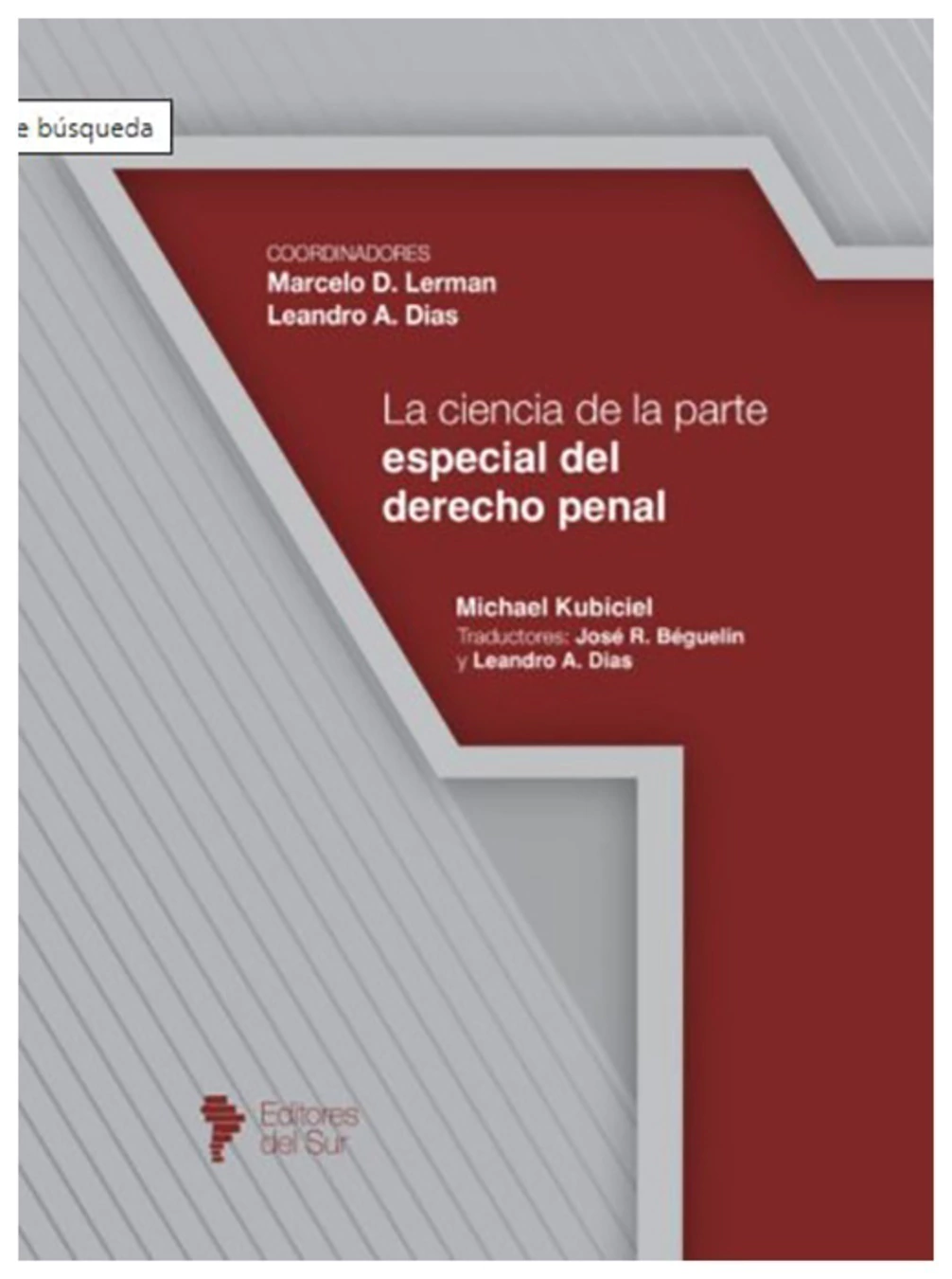 Michael Kubiciel (1973), Catedrático de la Universität Augsburg, es hoy en día uno de los referentes de las nuevas discusiones de derecho penal sustantivo en Alemania. En particular en los últimos años se ha dedicado a analizar cuestiones de enorme actualidad para la parte especial del derecho penal, como la regulación jurídico-penal de la eutanasia, la creación de nuevos delitos de derecho penal accesorio y los problemas recientes del derecho penal económico. Para acercar las ideas de este autor al público hispanohablante se publica en este libro la traducción (realizada por José R. Béguelin y Leandro A. Dias) de su monografía de habilitación para acceder a una cátedra de derecho penal: "La ciencia de la parte especial del derecho penal. En este libro. Kubiciel se encarga de criticar el caótico estado de las investigaciones sobre la parte especial del derecho penal, que poco ha avanzado en sistematicidad y cientificidad en el último siglo. En particular, critica convincentemente algunos puntos de partida metodológicos muy asentados, pero en extremo problemáticos. Como la libertad de elección de cánones interpretativos y la llamada "doctrina del bien jurídico" como criterio para determinar la legitimidad de actos legislativos de criminalización. Para superar estos problemas, Kubiciel reformula ciertas ideas contemporáneas, como la teoría de los deberes y de las competencias y la justificación de la pena como acto comunicativo de retribución, y las transforma en criterios generales para el análisis crítico de la parte especial del derecho penal. Se trata de un libro esencial para producir avances significativos en la dogmática de la parte del penal latinoamericana.
