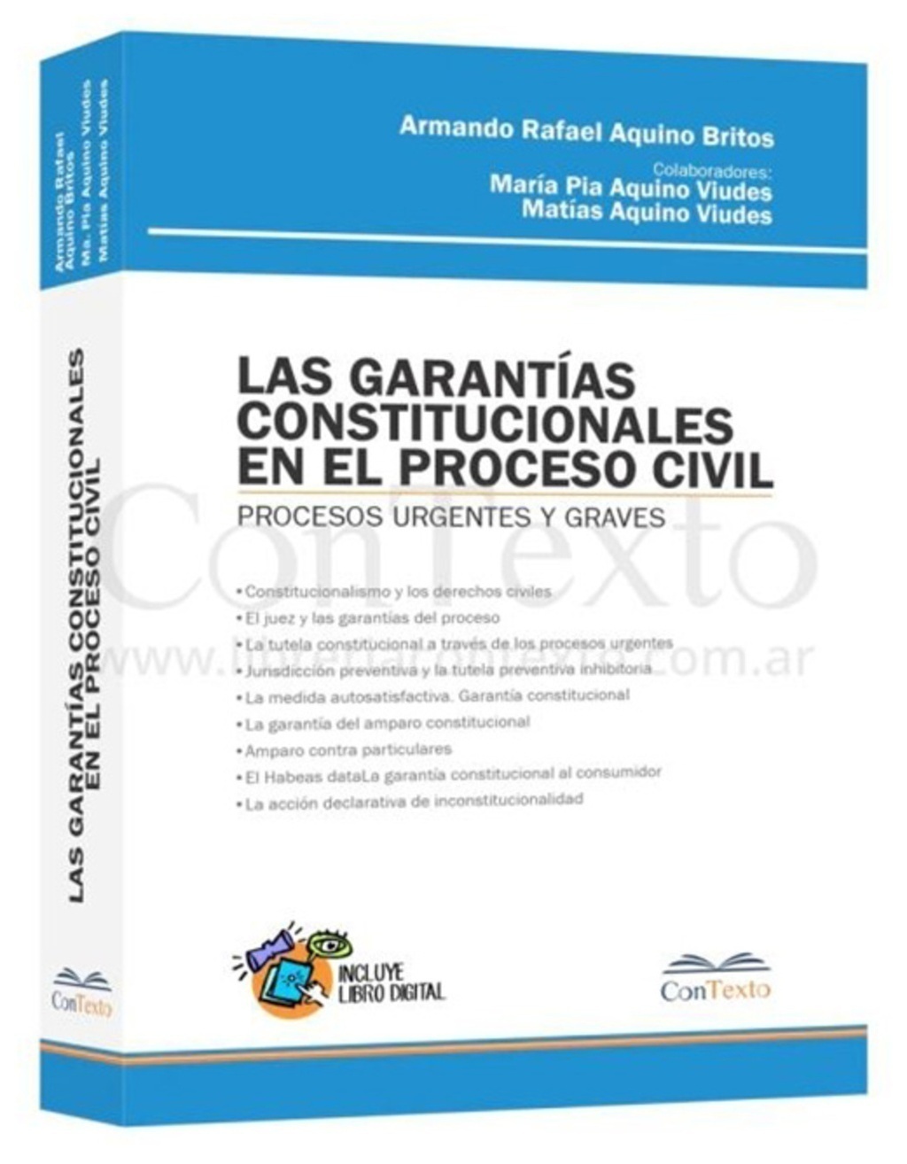 El autor aborda intensamente las garantías constitucionales que emergen del proceso de constitucionalización de los derechos civiles que se reconocen en el novel Código Civil y Comercial unificado de la Nación y donde, a su juicio, surgen nuevas formas y modos que garantizan y dan efectividad a los derechos contemplados en esta sistematización profunda. Analiza tal cuestión con decisión y profundidad no solo por la imperatividad del mandato normativo sino por la obligación del juez y a partir de allí formas y modos en que se da integra cobertura más y mejor a los derechos fundamentales; pero también aboga y demuestra que la respuesta a los requerimientos debe ser pronta y efectiva, urgente y completa explicando los modos y las formas en que se realiza la tutela judicial efectiva que debe siempre efectuarse en tiempo útil para ser satisfactoria. Suma así una mirada garantista del ordenamiento jurídico y es una invitación a aplicar el derecho para satisfacer efectivamente los requerimientos de justicia. Constitucionalismo y los derechos civiles El juez y las garantías del proceso La tutela constitucional a través de los procesos urgentes Jurisdicción preventiva y la tutela preventiva inhibitoria La medida autosatisfactiva. Garantía constitucional La garantía del amparo constitucional Amparo contra particulares El Habeas data La garantía constitucional al consumidor La acción declarativa de inconstitucionalidad