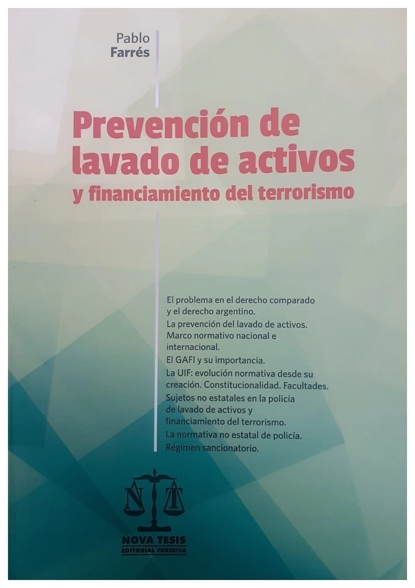 Contenido: El problema en el derecho comparado y el derecho argentino. La prevención del lavado de activos. Marco normativo nacional e internacional. El GAFI y su importancia. La UIF: evolución normativa desde su creación. Constitucionalidad. Facultades. Sujetos no estatales en la policía de lavado de activos y financiamiento del terrorismo. La normativa no estatal de policía. Régimen sancionatorio.