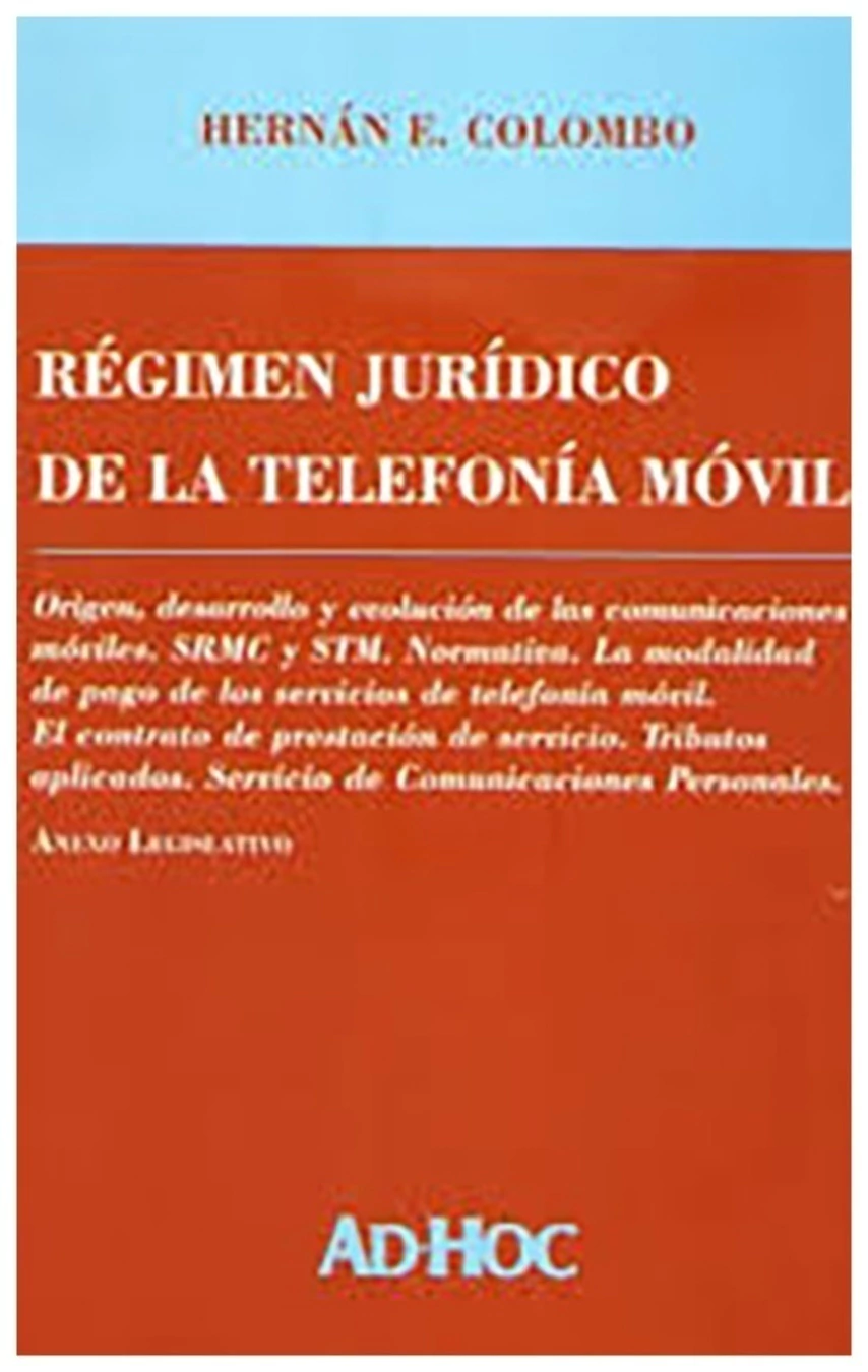 Comentarios preliminares. Origen, desarrollo y evolución de las comunicaciones móviles. El espectro radioelectrico. SRMC y STM. Antecedentes. Normativa. La modalidad de pago de los servicios de telefonia móvil. Calling party pays (CPP) y mobile party pays (MPP). El contrato de prestación de servicio. Evolución y modalidades. Tributos aplicados a los servicios de comunicaciones móviles. Servicio de comunicaciones personales. Anexo legislativo: Ley nacional 19.798 de telecomunicaciones. Resolución 490/97-SC, Reglamento general de clientes de los servicios de comunicaciones móviles. Decreto 266/98, Reglamento del servicio de comunicaciones personales. Decreto 764/00, Liberalización de las telecomunicaciones. Bibliografia.